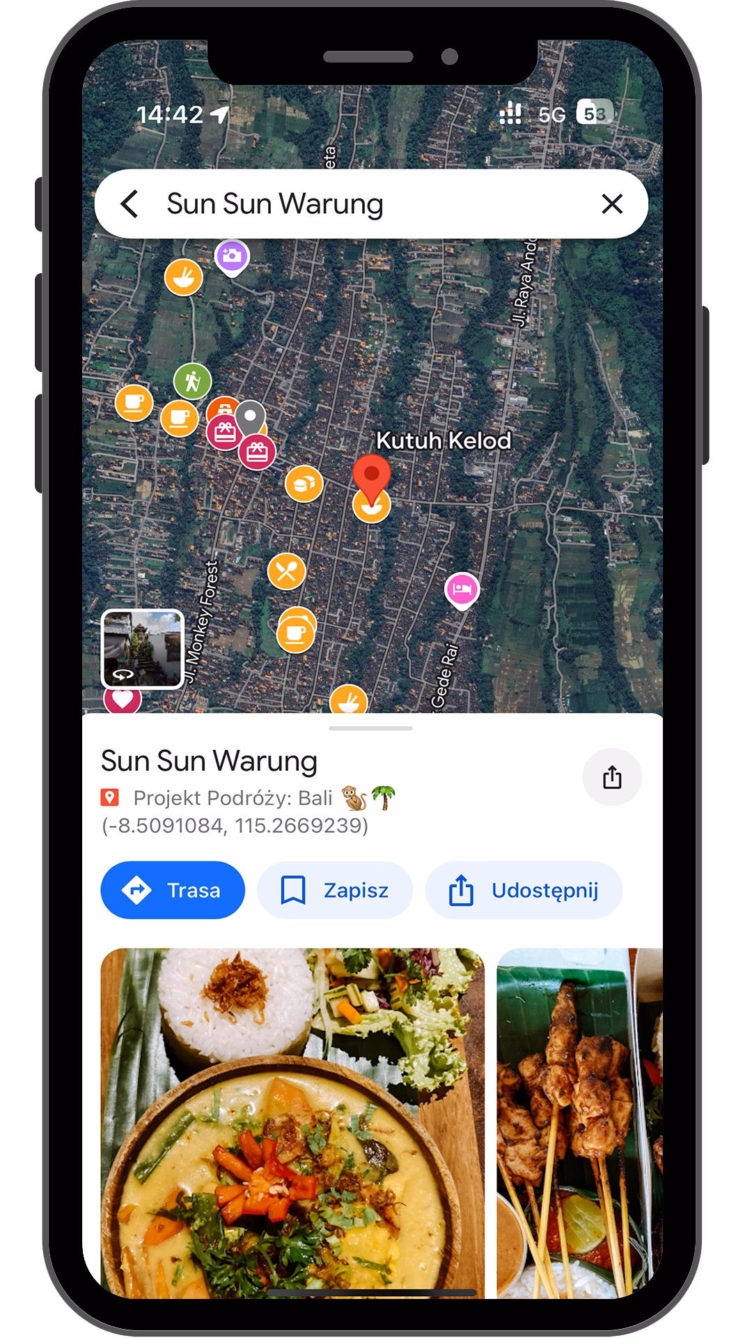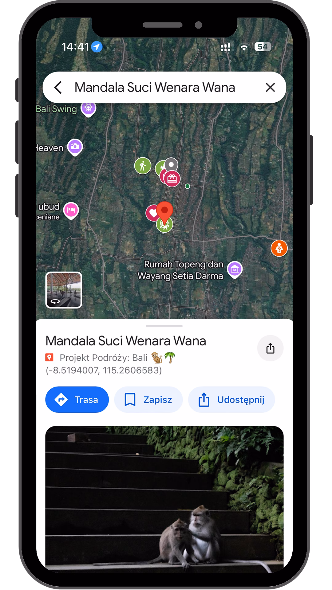 Podajesz maila powiązanego z Google Maps, a my w kilka minut przyznajemy Ci dostęp. Otwierasz Google Maps -> Zapisane -> Mapy -> Wybierasz „Projekt Podróży: Bali”. Jeśli potrzebujesz wsparcia napisz na [email protected]