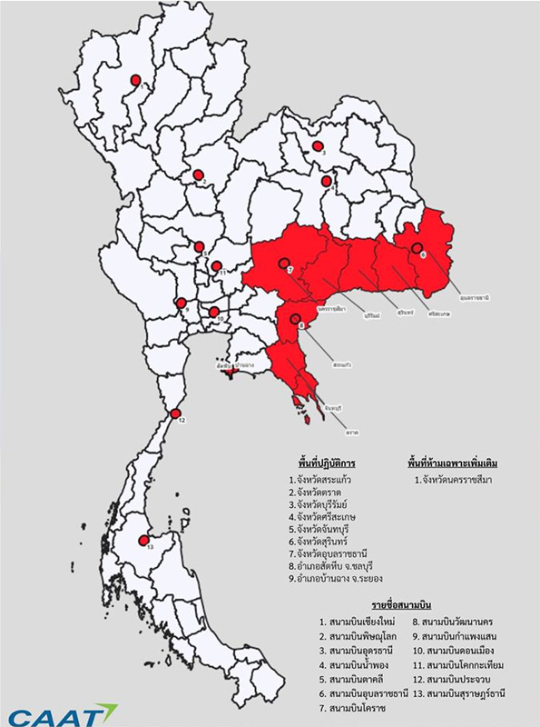 Ograniczenia dotyczą tylko wybranych rejonów: pięciu przygranicznych prowincji objętych stanem wojennym (Sa Kaeo, Buri Ram, Si Sa Ket, Surin, Ubon Ratchathani) oraz tzw. obszarów wrażliwych pod względem bezpieczeństwa (Sattahip – Chon Buri, Mueang – Rayong, Phayuha Khiri – Nakhon Sawan, Mueang – Ratchaburi).